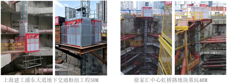 1.用于隧道、地铁及高层基坑;2.升降机基础在顶部,同时在顶部加高标准节再往下传输;3采用滚动型附墙及特殊传送机构;4.输送系统采用变频控制,平稳可靠。