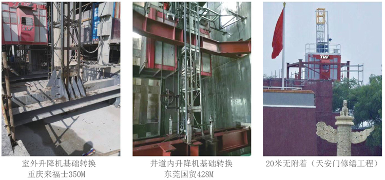 1.用于隧道、地铁及高层基坑;2.升降机基础在顶部,同时在顶部加高标准节再往下传输;3采用滚动型附墙及特殊传送机构;4.输送系统采用变频控制,平稳可靠。