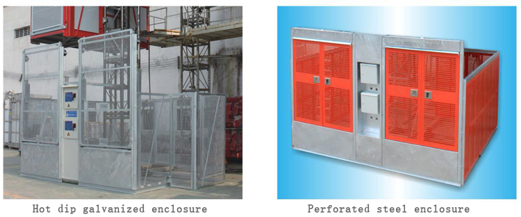 SC construction lifts have perfect and reliable electrical and mechanical interlocking safety devices: door safety switch, upper and lower limit switch, limit switch, anti-top switch, safety protection hook and anti-fall safety device. Overload protector is also configured according to requirements